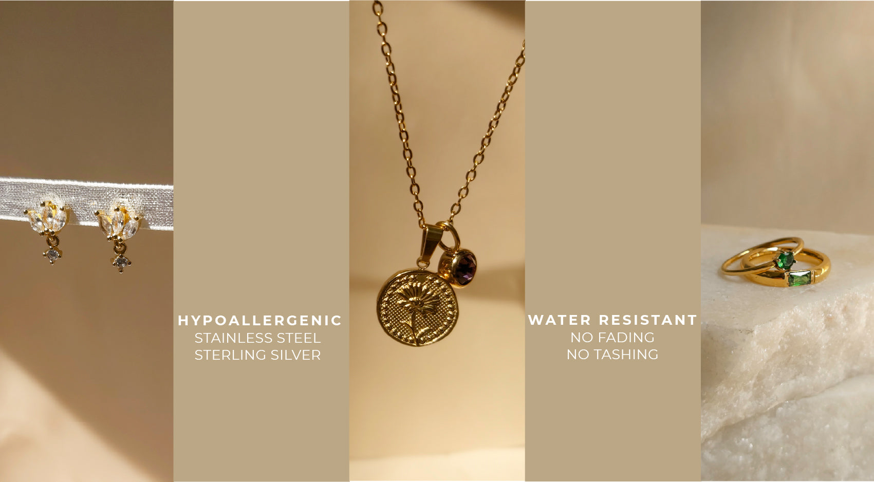 The best part? Our jewelry is made to keep up with you. You can sleep, shower, or even work out without worrying about losing its shine. Thanks to our waterproof coating, our pieces stay beautiful and last a long time.