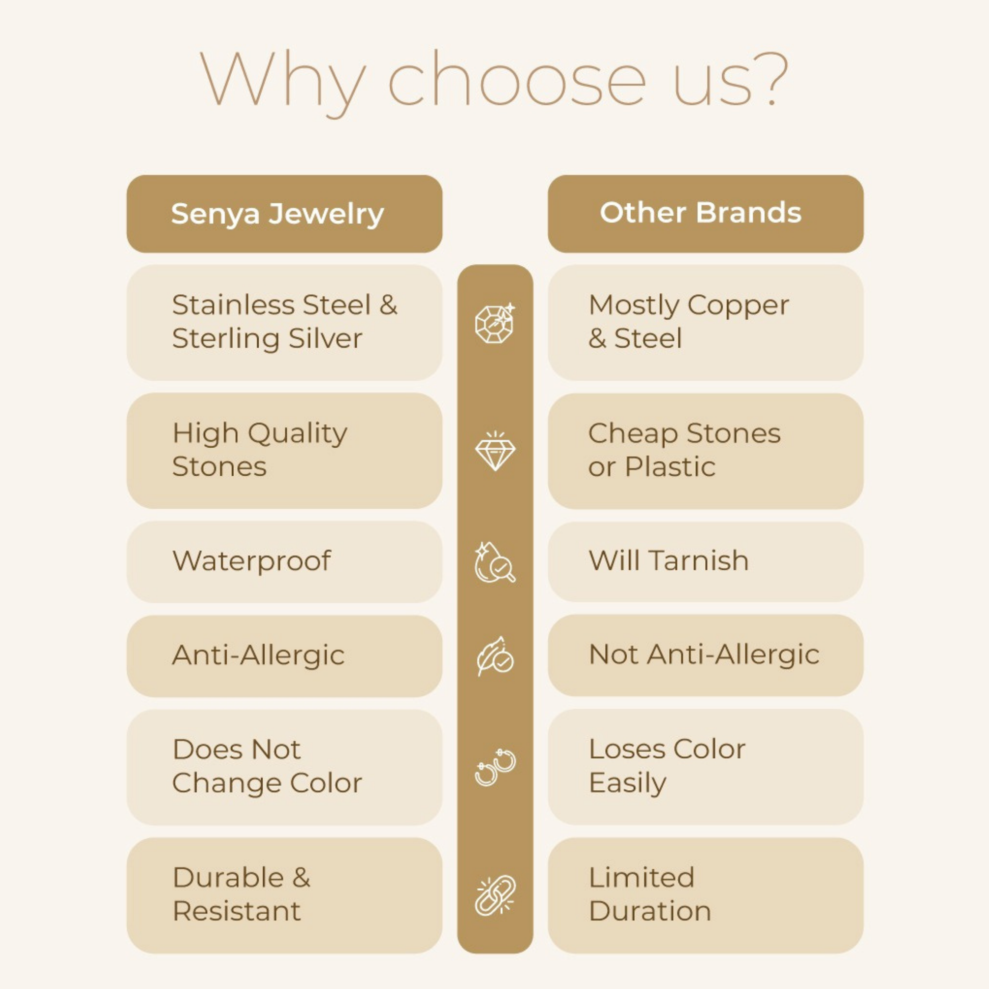 Why settle for less? Embrace the beauty and resilience of SENYA Jewelry, and let your style shine bright, no matter the occasion!